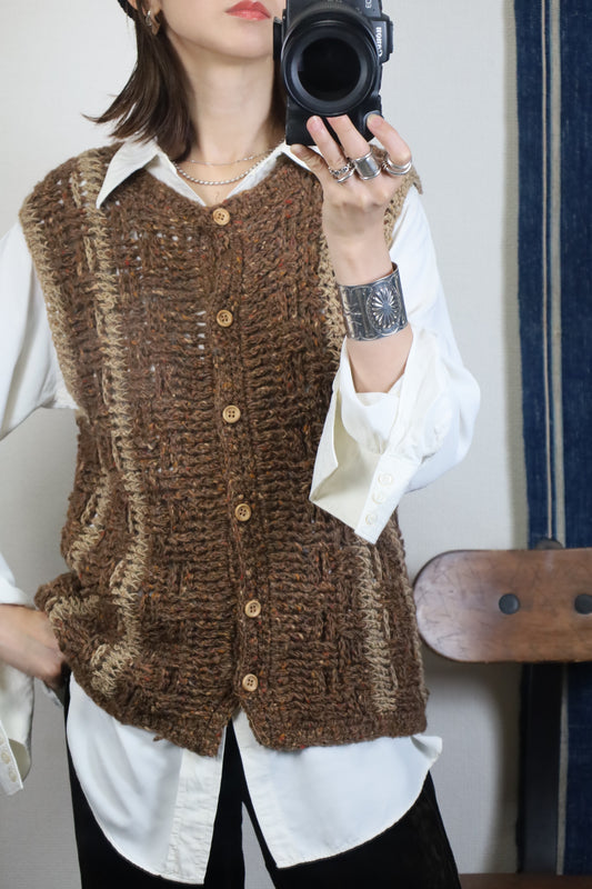Z255 / 1980's OLD UNKNOWN Knit Vest Linen Fablic