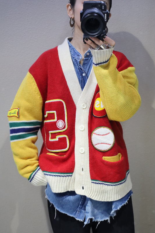 A1014 / 1950's Vintage spauldinc Sand-knit Lettered cardigan