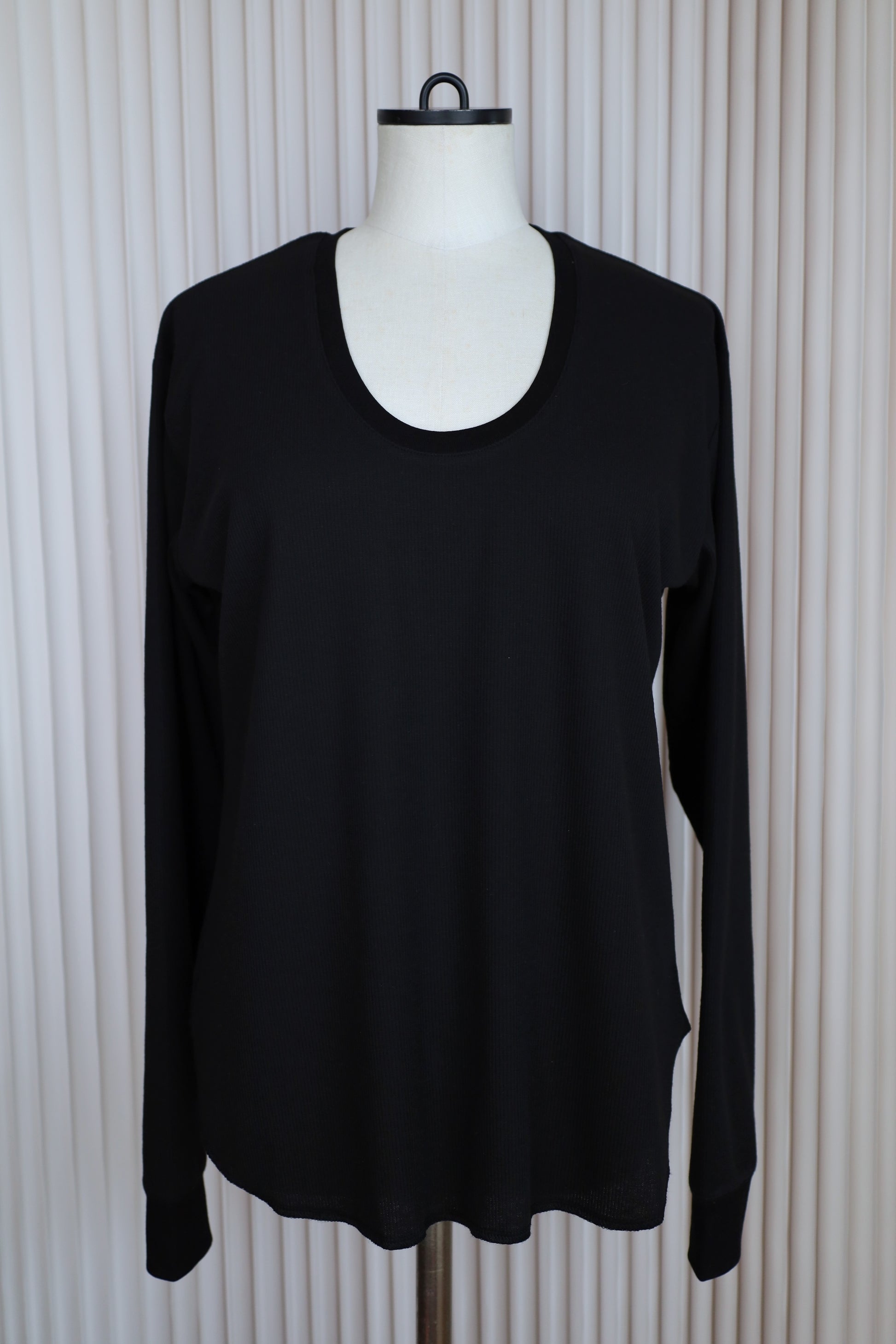 やや深めに開いたUネックが、デコルテをすっきりと綺麗に見せてくれる一枚。
