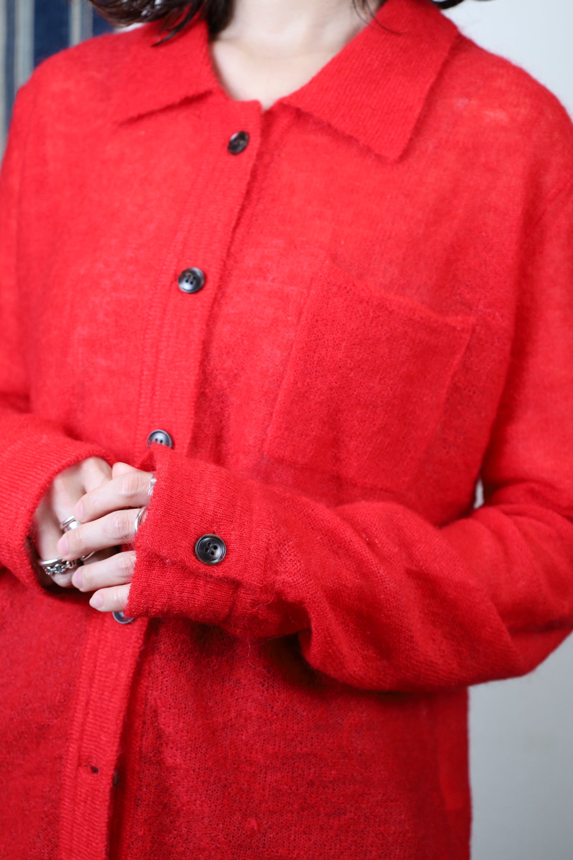 なので袖口もカフスのような、ニットではあまり見ないデザインにしました。