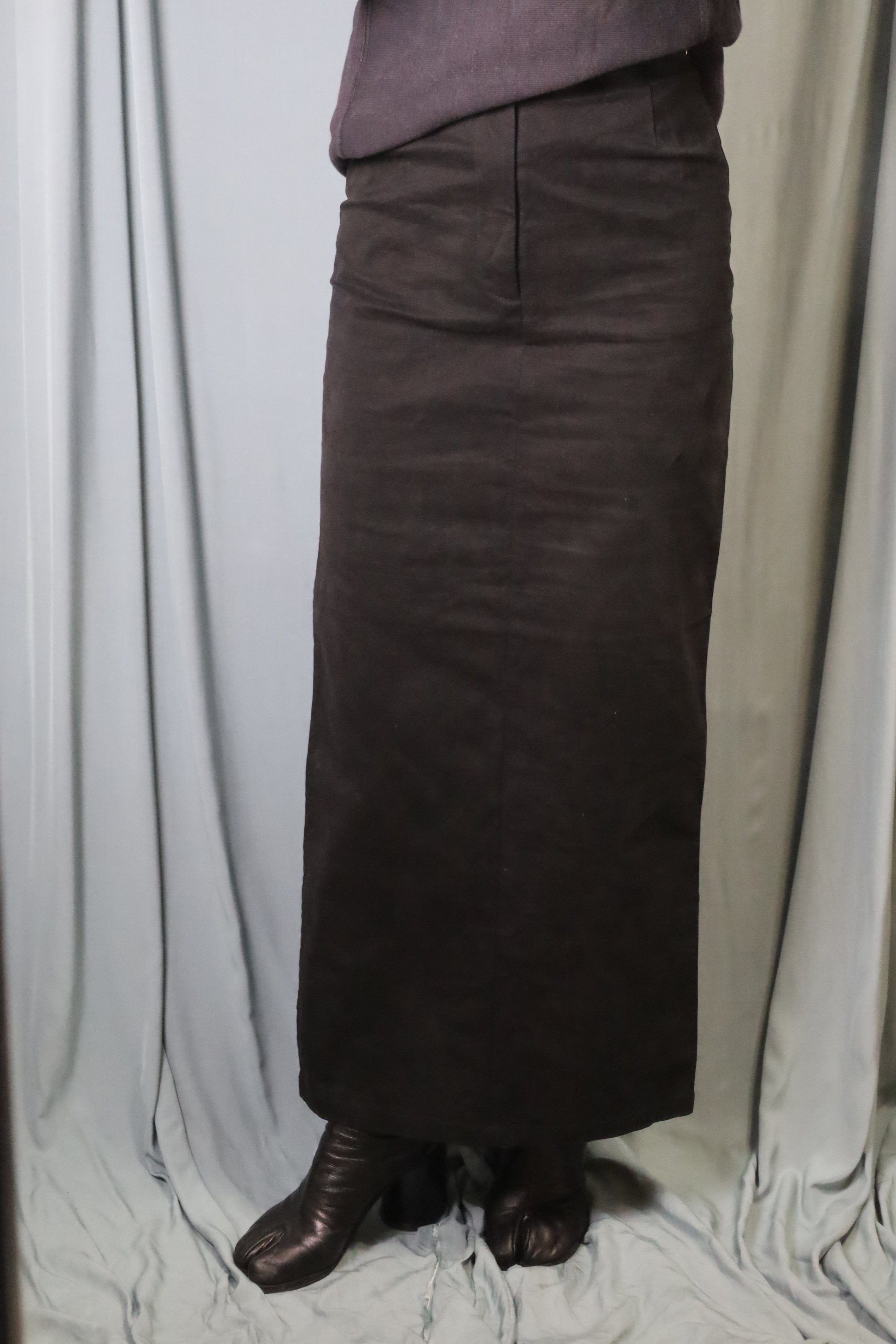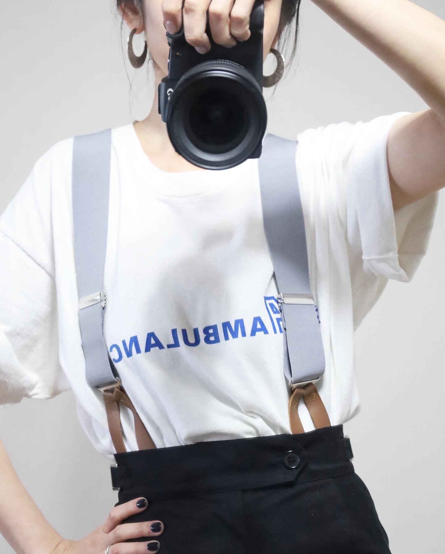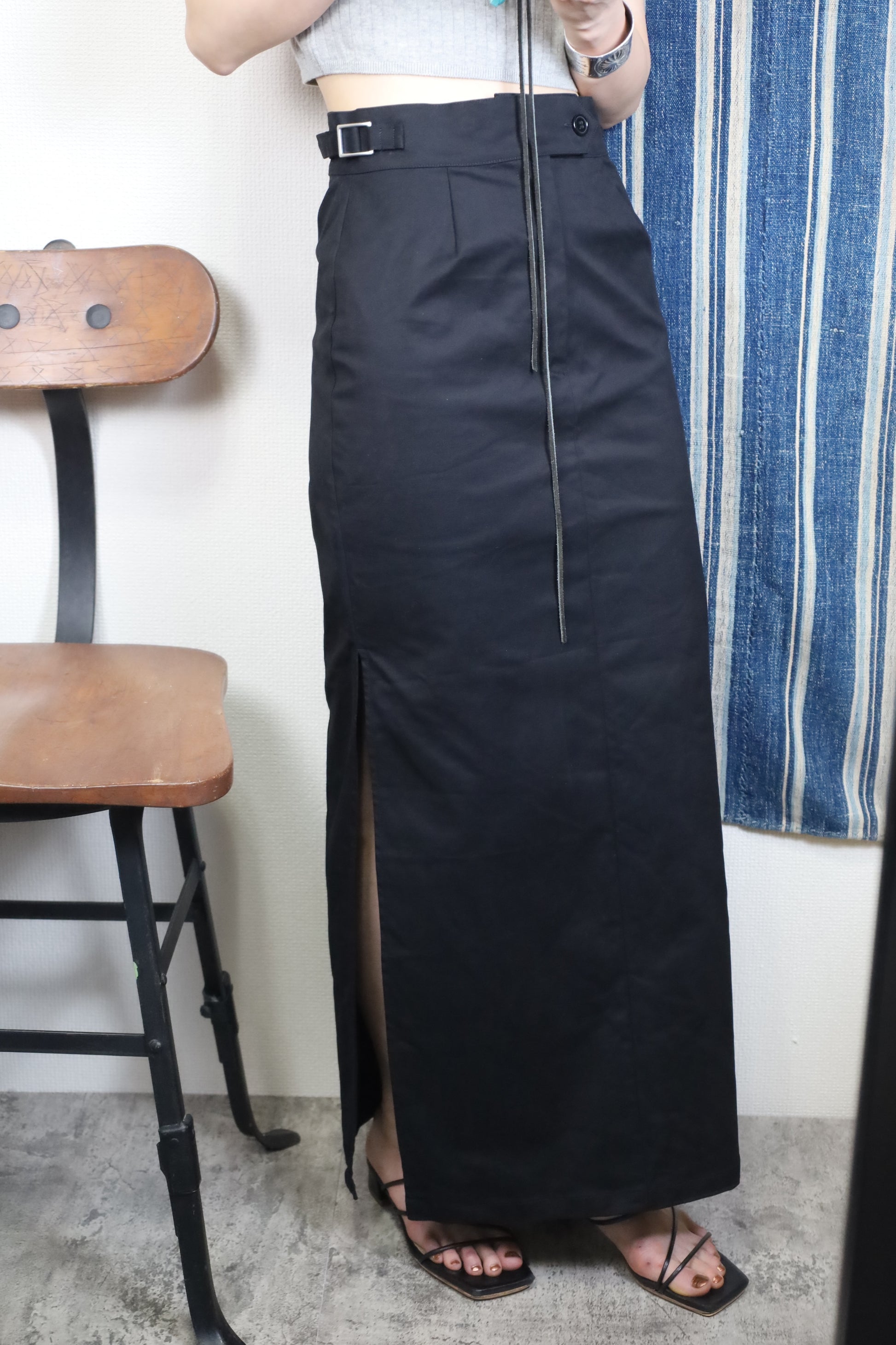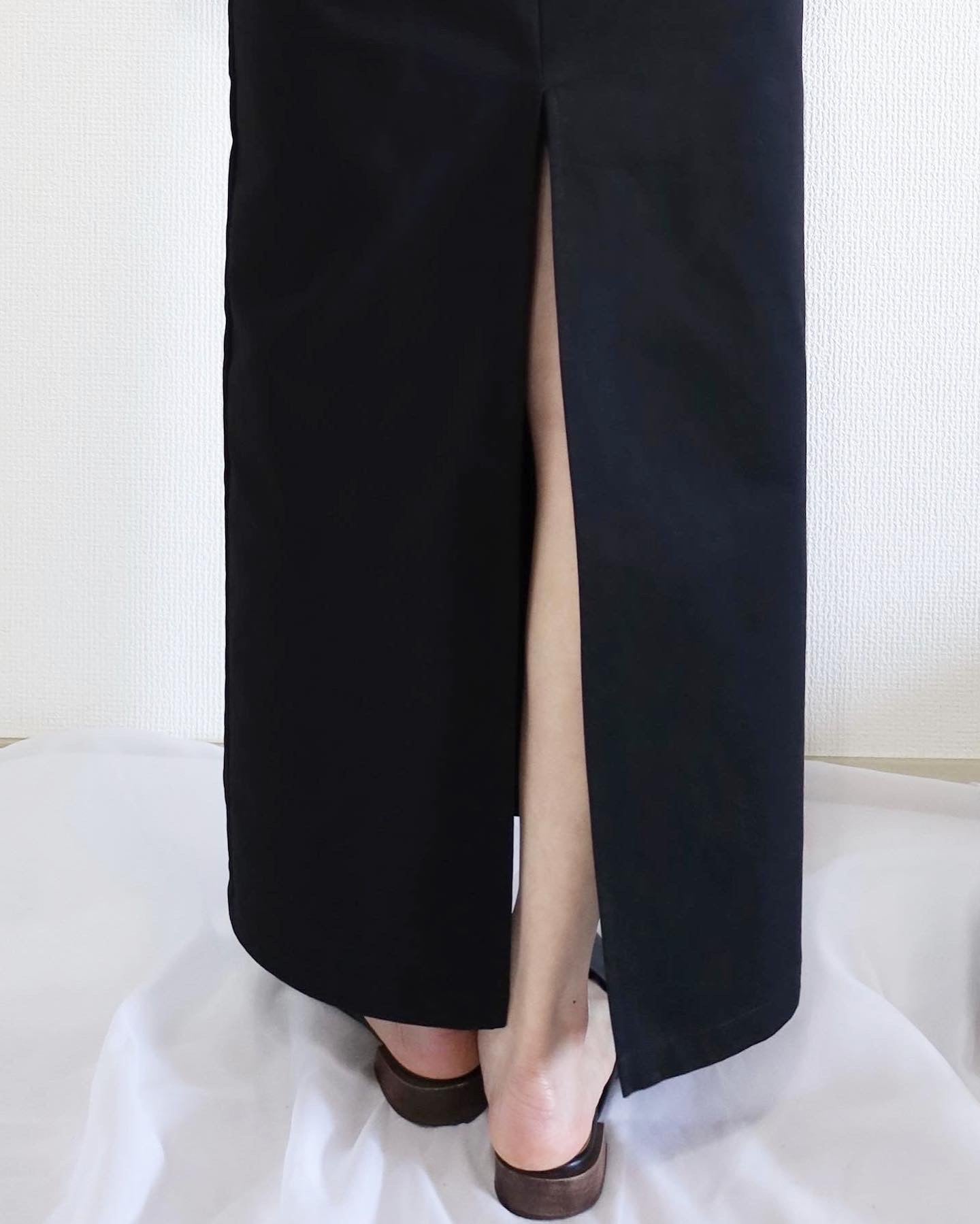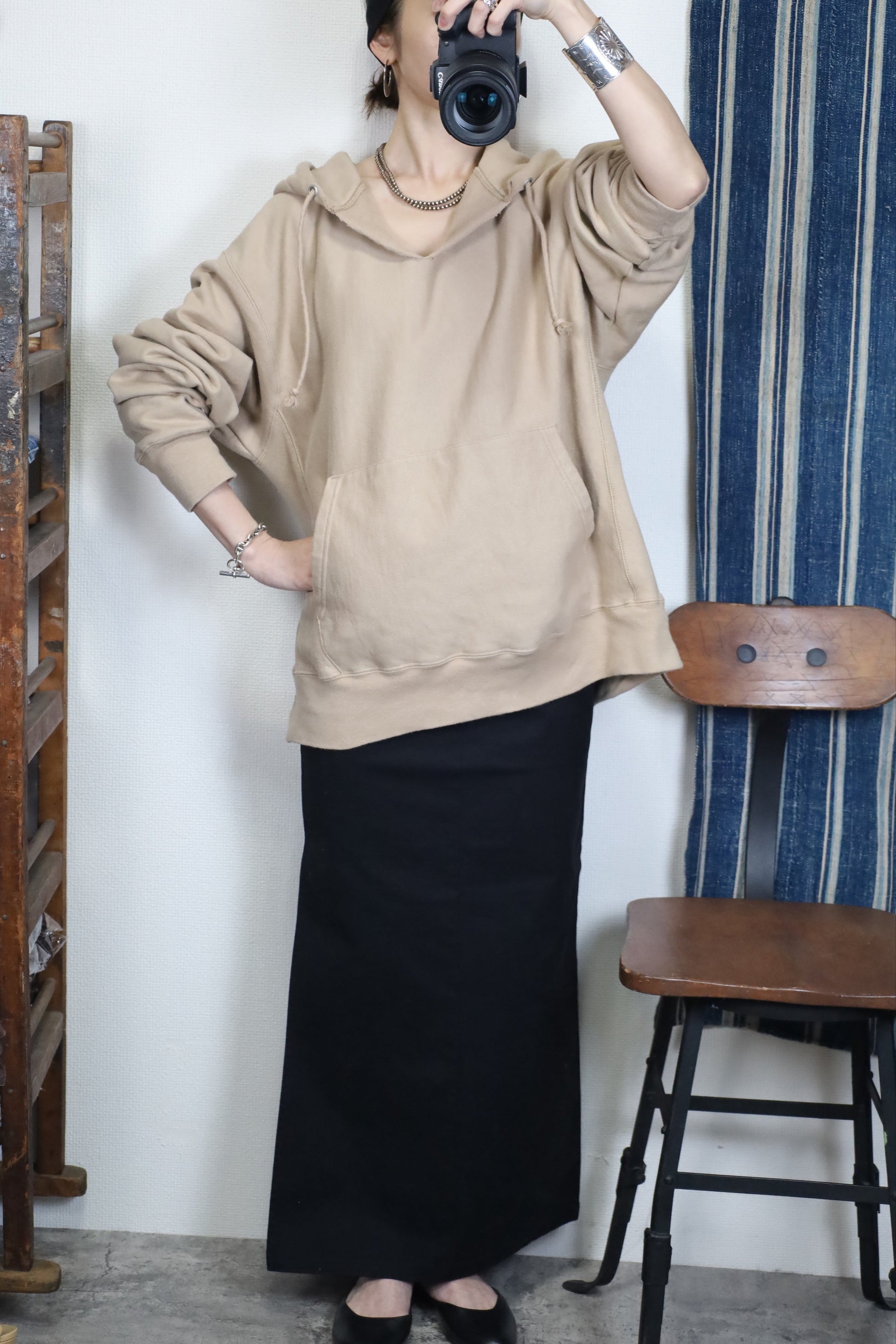 ウエストには4箇所ダーツを入れているので上から洋服をアウトしたスタイリングで